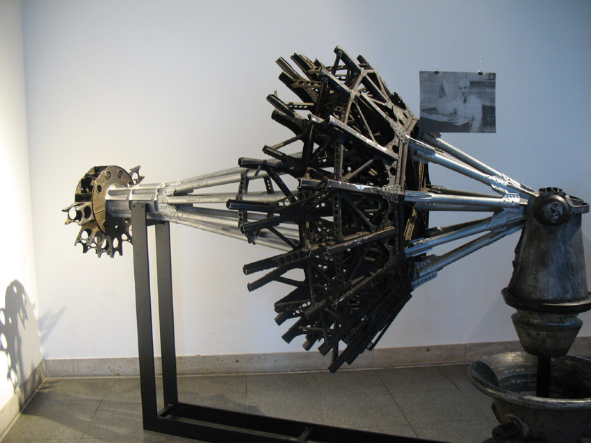 Historical images from the Zeppelin plants and of journeys made by airship show people going about their daily routine: workers building metal constructions, sewing fabric outer shells or carrying out tests with mixtures of gases, machinists, ‘cell carers’, radio operators and personnel working in the restaurant, bar or service sector during flights. The printed photographs from the Luftschiffbau Zeppelin GmbH’s archive inventory were treated with linseed oil. The top layer of the images is now badly worn; the base is transparent. Integrated almost incidentally between the technical exhibits and the art collection, the images appear as slowly fading memories of a mythical time.